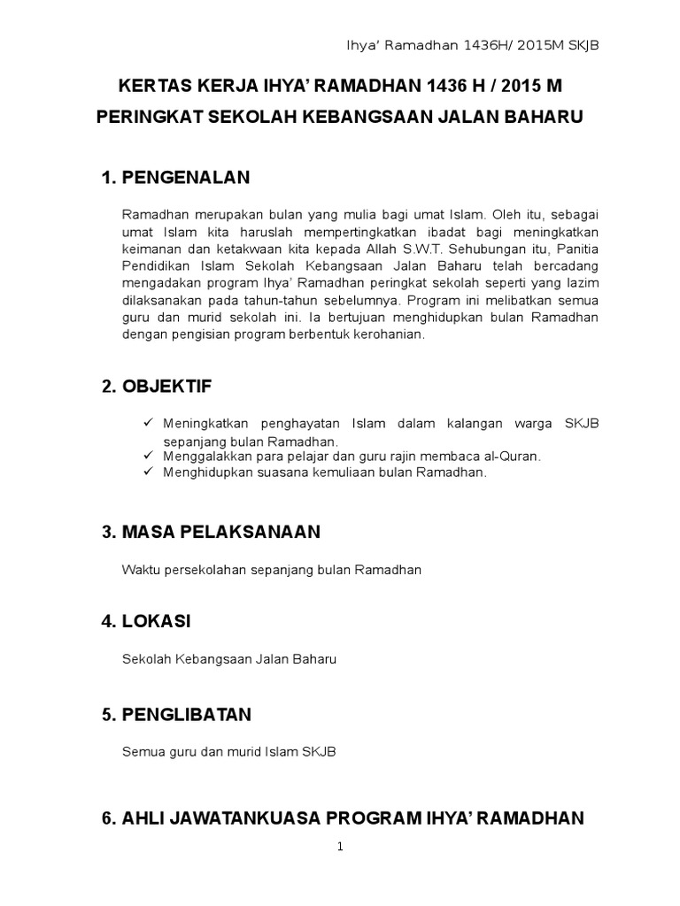 Contoh Kertas Kerja Ihya Ramadhan : Bayangkan jika kamu sebagi pihak pertama atau kedua memiliki kerja sama proyek akan tetapi tanpa ada perjanjian tertulis yang terikat?. Kertas dalam bahasa inggris disebut paper dan dalam bahasa belanda disebut papier. Tujuan program ihya ramadhan 1432h ini dijalankan adalah untuk: 2.1 melahirkan murid yang seimbang dari segi jasmani, emosi, rohani, intelek dan sosial. Daftar lengkap contoh materi kultum singkat dan ceramah ramadhan terbaru tahun 2020 m / 1441 h. Kertas atau dalam bahasa inggris disebut paper merupakan media utama untuk menulis, melukis, dan mencetak.