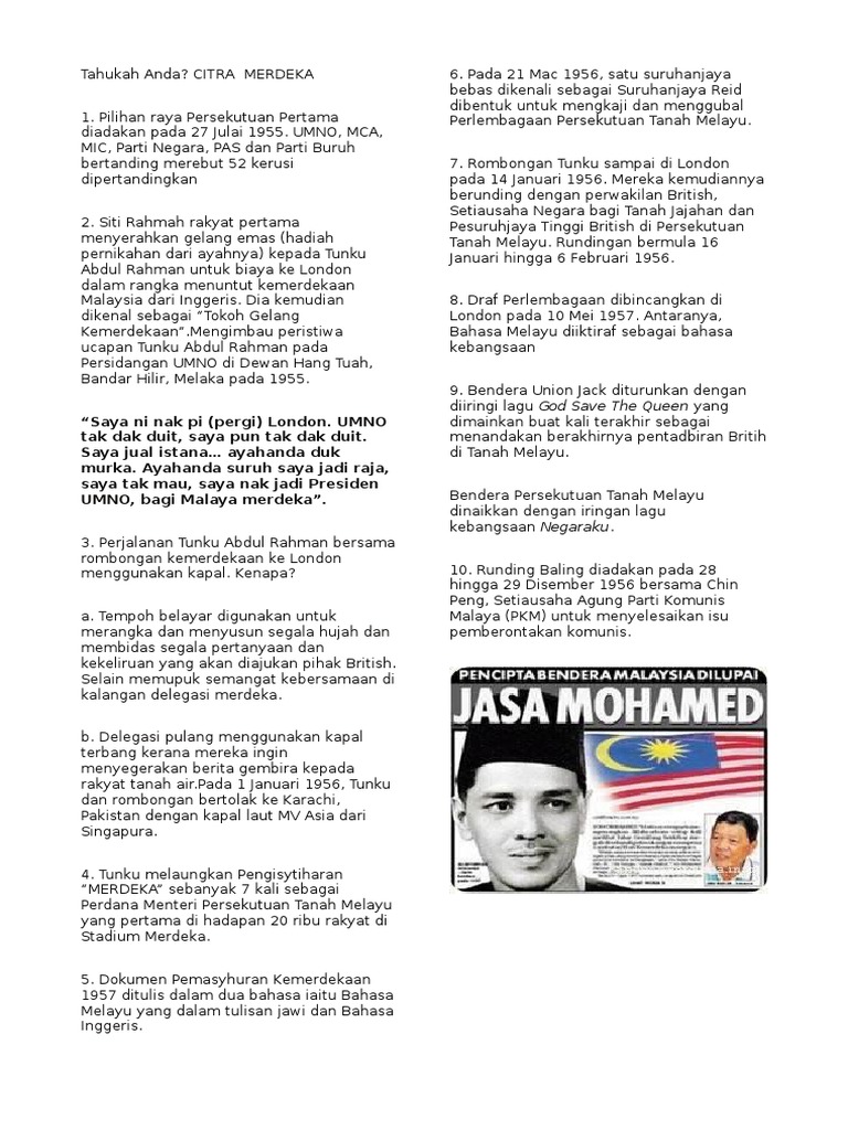 Folio Sejarah Kemerdekaan Pdf Txt from html.pdfcookie.com Gambar di atas merupakan barisan kabinet pertama semasa tunku abdul rahman pada tahun 1959. Ketua rombongan merdeka ialah dato'. Rombongan kemerdekaan bertolak ke karachi, pakistan menaiki kapal laut bernama m.v. Contoh gambar kongres pertama umno. Pada 3 jun 1957, satu perhimpunan menyambut ketibaaan rombongan kemerdekaan ke london yang merundingkan hal berkaitan dengan rangka perlembagaan persekutuan tanah melayu telah diadakan di lapangan. Tunku abdul rahman telah membawa rombongan untuk berunding. Rombongan tunku abdul rahman ke padang bandar hilir, melaka untuk pengumuman kemerdekaan setelah pulang dari london. Loncat ke navigasi loncat ke pencarian.